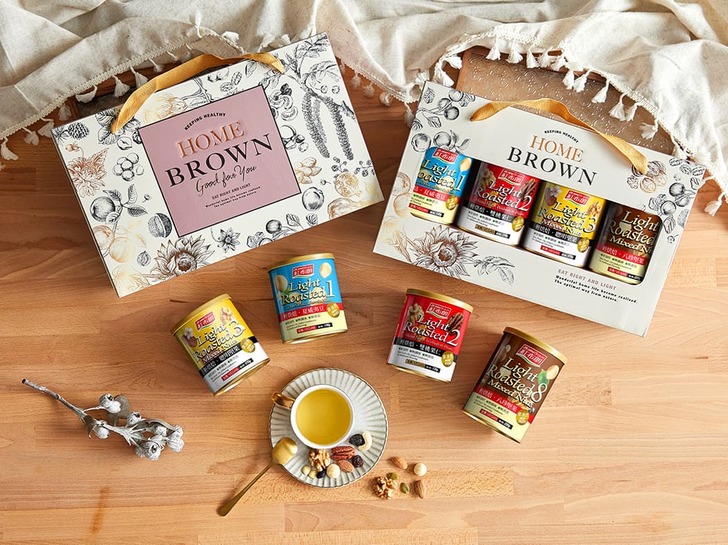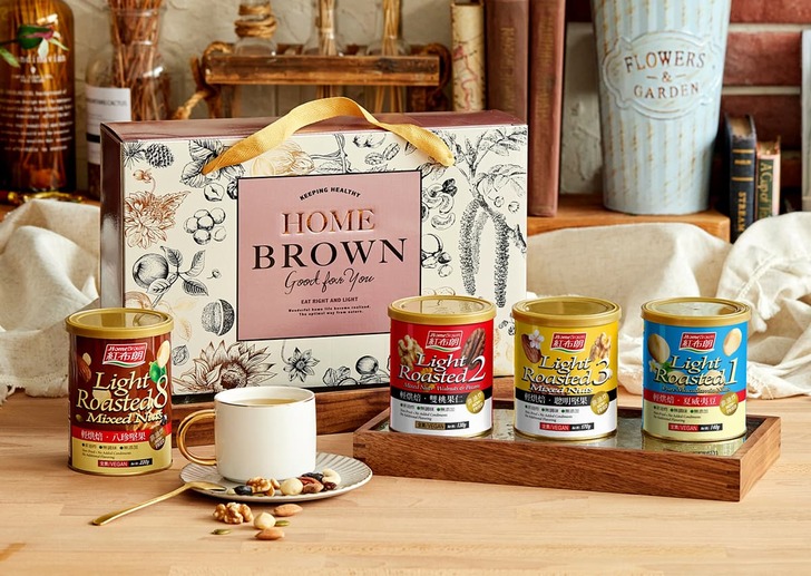 不論是年節送禮還是企業間送禮聯繫,紅布朗每款禮盒以設計新穎獨特呈現禮盒其精緻度和貴重感,依據喜好及需求提供客製化服務,讓每一次的送禮都不同凡響。除了有原味無添加的堅果禮盒,還有融合台灣在地經典食材如蜂蜜、香蔥、馬告和薑黃等風味的堅果,清甜香脆不膩口。