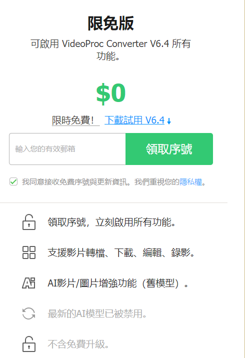 【活動名稱】: VideoProc Converter AI 6.4版本超值活動