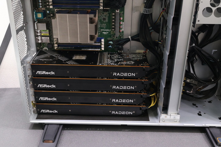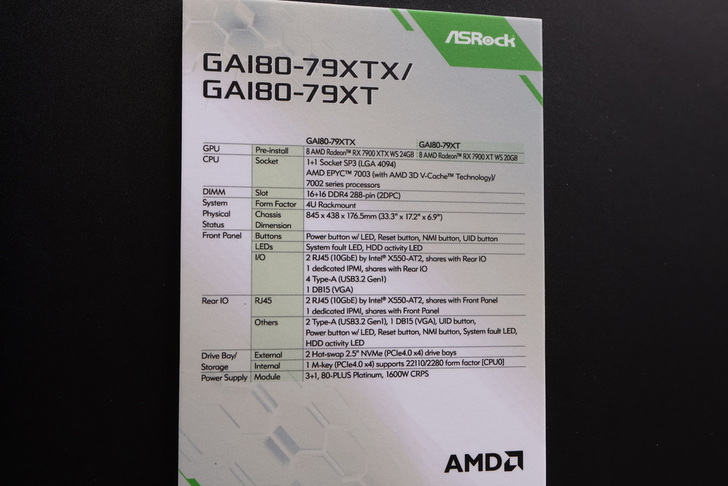 現場演示的 GAI80-79XTX + 79XT 為用戶提供多卡取向AI運算方案