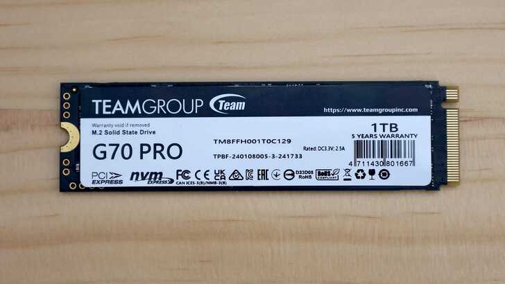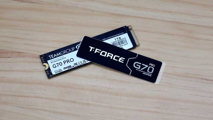 G70 Pro 不管是石墨烯版本還是鋁散熱片版本,都將 SSD 有主控晶片的正面保持裸露,出廠也不會預裝散熱片,我覺得對 DIY 消費者來說是比較方便的。不管是要用隨附的散熱片,還是自己的散熱片、主機板的散熱片,都有更高的彈性。最重要的是,相較過往許多廠商會將保固標籤貼紙貼在背面,在 PCIe Gen3、PCIe Gen4 時代反而變成散熱的絆腳石,TEAMGROUP 將標籤貼紙移到背後,是比較好的做法。不過更好的做法,當然就是完全都不要標籤貼紙,或可以朝小張的標籤貼紙邁進來試試看。畢竟背面的顆粒也是會有溫度,也有一些使用者會想要將背面顆粒散熱。G70 Pro 這樣的薄型石墨烯散熱片,不僅安裝在筆記型電腦,可以避免厚重的散熱器與筆電產生機構干涉,安裝在 PS5、外接 SSD 都會更加方便。