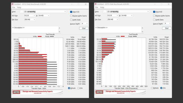 在 ATTO Disk Benchmark 中,讀取大約在 6.90GB/s,寫入則大約在 5.10GB/s。