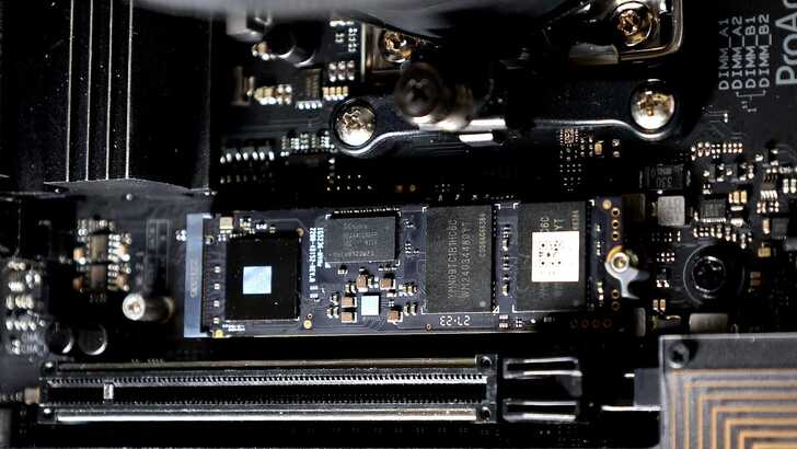 不同於上次開箱到帶有鋁散熱片的 G70 Pro 採用 Micron 的 DRAM。在這條石墨烯版本的 G70 Pro 上搭載的是 SK Hynix H5AN4G6NAFR,DDR4,單顆容量 512MB。