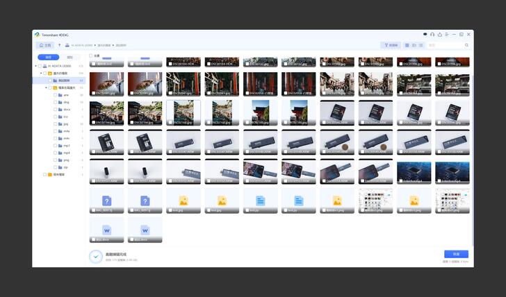 靜待一小段時間,就可以看到 Tenorshare 找到了所有已刪除的檔案。