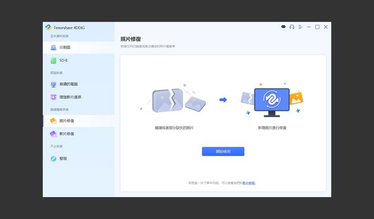 除了資料遺失的救援,Tenorshare 4DDiG 也有提供照片和影片的壞檔修復,如果檔案受損不嚴重可以試看看。