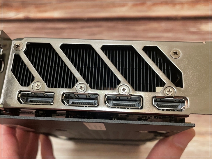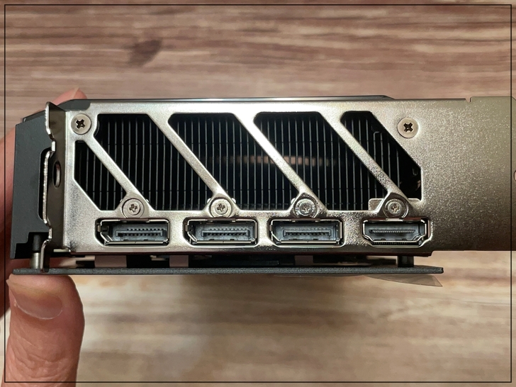 輸出介面:3 x DisplayPort 2.0、1 x HDMI 2.1,開孔的部位是排熱的出風口。