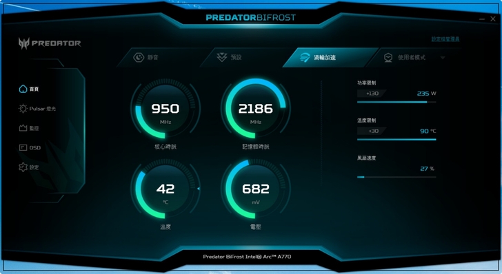 顯示卡:Acer Predator BiFrost Intel® Arc™ A770 OC
