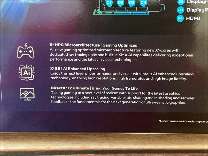 除了採用新一代 Xe HPG 微架構具備光線追蹤、XeSS AI 加速、DX12 Ultimate 與 Vulkan 等次世代能力,顯卡更採用鼓風機 + 軸流扇的雙風扇配置,擁有16G的記憶體。