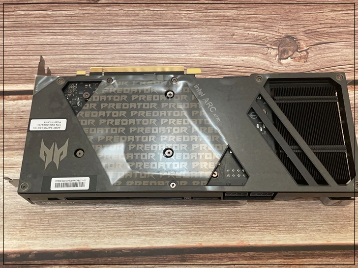 顯示卡本體有使用膠膜保護避免刮傷,如果只是想要收藏的話當然就不用拆了(畢竟這是INTEL跨足顯示卡市場的首款中高階顯卡,確實也有收藏的價值),要拿來使用還是要拆除膠膜,不然會有散熱上的問題。
