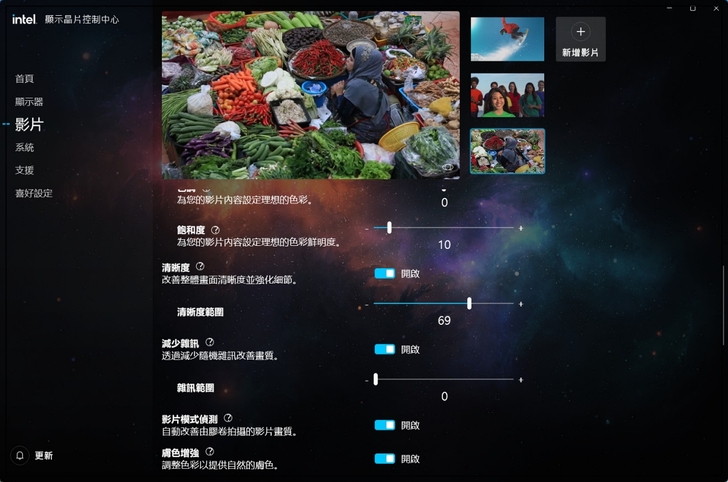 影片的喜好調整:亮度、對比、色調、飽和度、清晰度等等……。