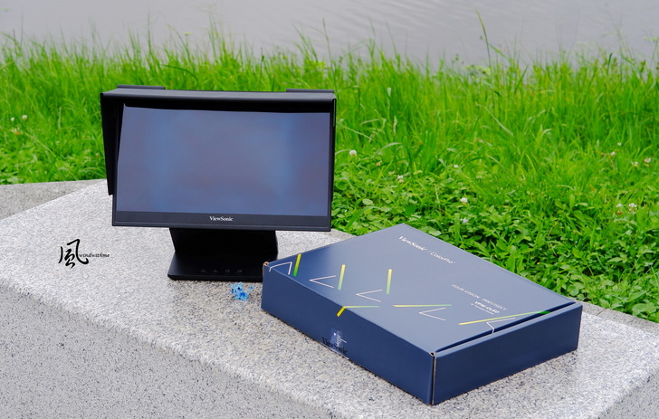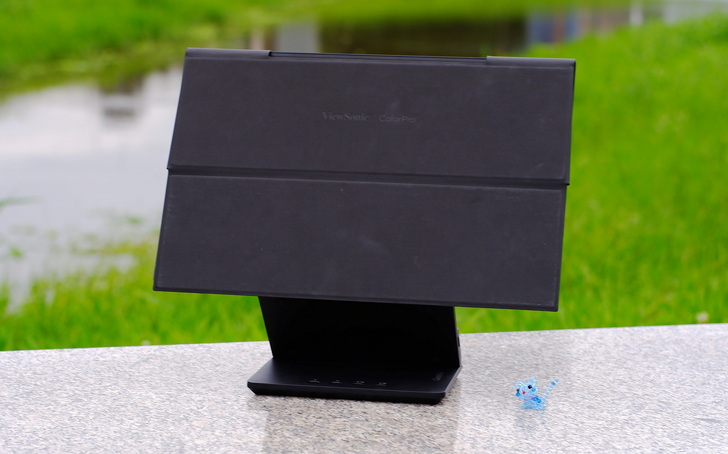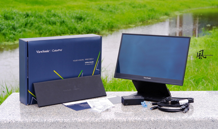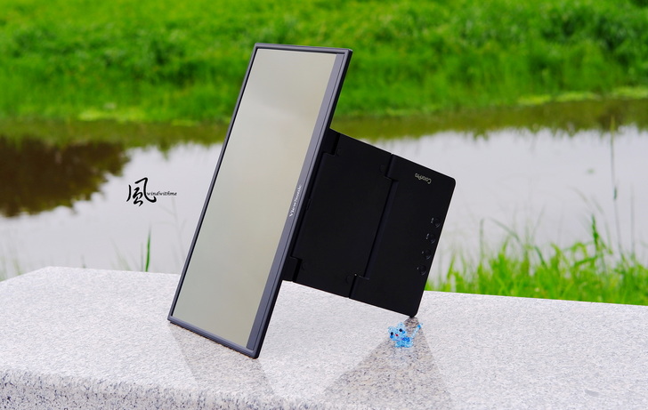 VP16-OLED淨重為0.98公斤, 實測含底座約961公克,螢幕不含底座尺寸359 x 227 x 6mm,包含底座與可調範圍約359 x 227~314 x 19mm。