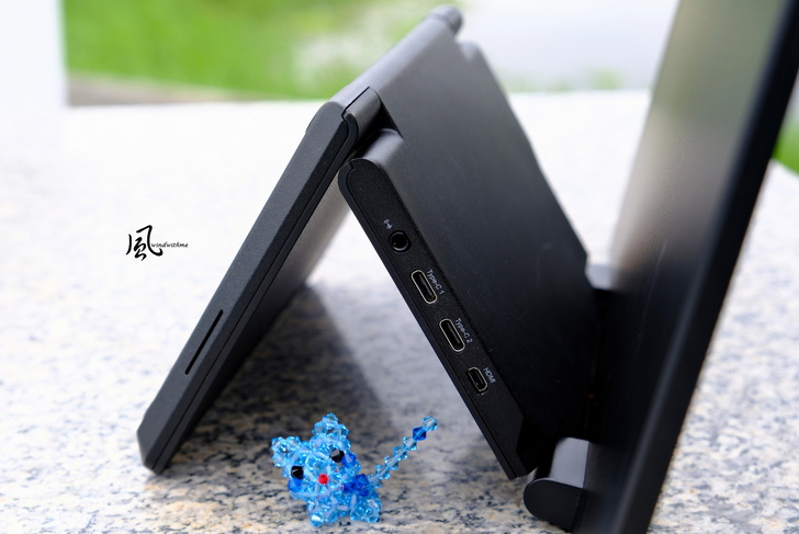 右邊IO連接提供2個USB 3.2 Type C(包含資料傳輸、DisplayPort影像輸入、40W供電)、3.5mm音源輸出、Micro HDMI 1.4輸入。