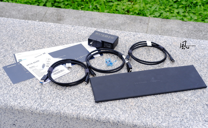 配件部分有快速入門指南、磁吸多功能遮光罩、15~60W多段式變壓器、Type-C to Type-C線、Type-C to Type-A線、Micro HDMI to HDMI線。