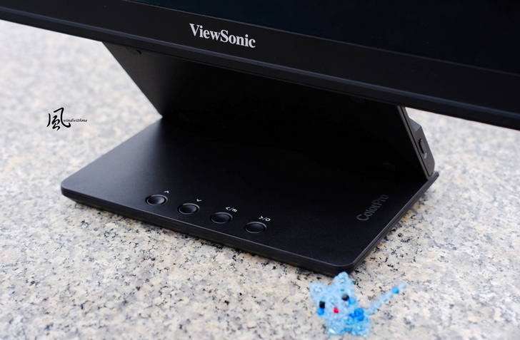 底座最下方控制面板有4顆按鈕,提供OSD選項設定使用,旁邊為電源開關。
