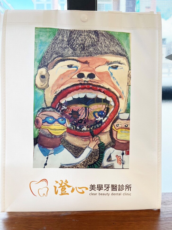 澄心自建立診所以來,一直致力打造診所的舒適度,營造的溫馨的氣氛,診所空間的牆面也與建築師公會合作,展示了慢飛天使的精彩畫作,對這群特別的孩子,他們用盡心思的創作能讓更多人看見是最大的喜悅,也因為這樣的因緣,還有幾幅畫作順利賣出;診所的提袋設計,更是採用了其中一幅剛好與牙科看診相關的創作來印製,這逗趣的提袋總讓拿到的患者發出宛然一笑。而對待患者也秉持的猶如家人般的親切感,不只對孩童展現親和力,相信大人們也可以體會「澄心」在「人與空間」創造出不同於一般診所的感受。