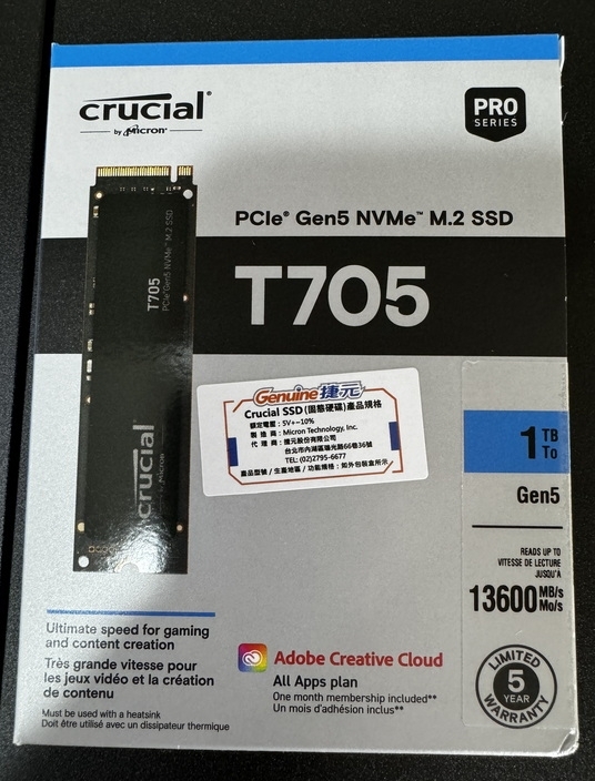 今年又推出了Crucial T705可以說是市場上最快的M.2 Gen5