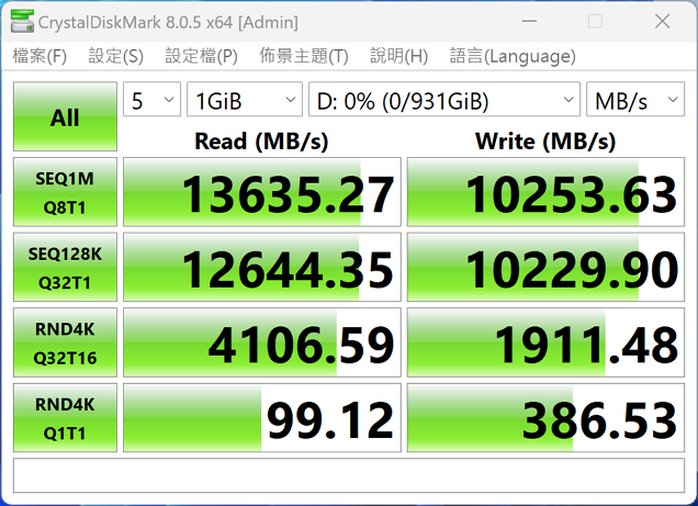 讀取13,635 MB/s 寫入 10,253 MB/s