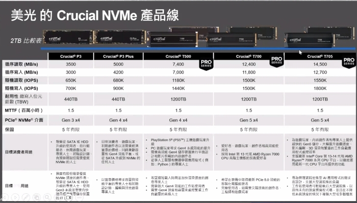稍微整理分享一下美光目前在市場上的 NVMe M.2 產品