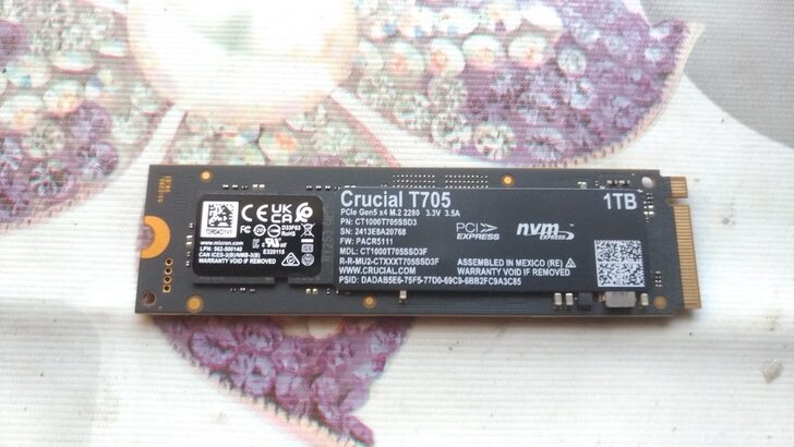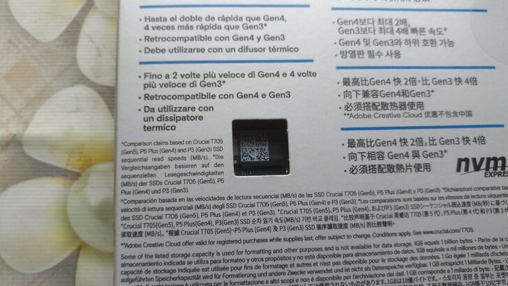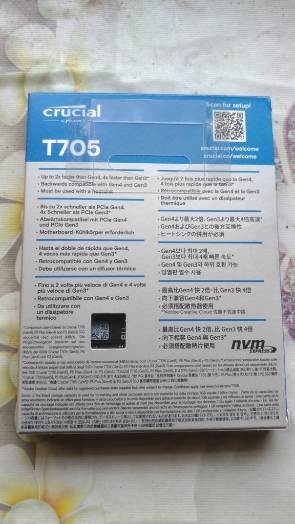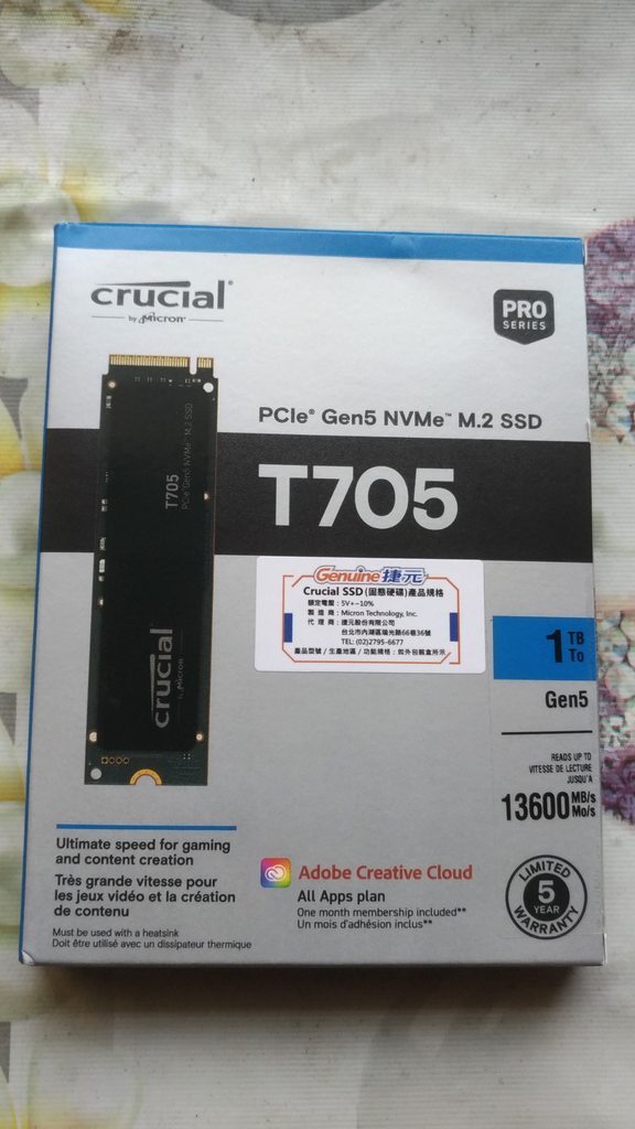 側面藍色這塊也有T705的型號表示,以及PRO與crucial by micron的標示
