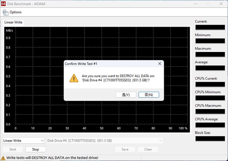 Linear Write部分會將所有裝置上的資料清空,會讓你按好幾次確定