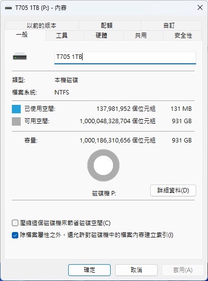 由底下的實體資訊可得知,T705初始化容量為1000GB