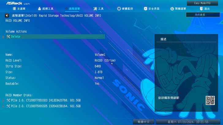 但畢竟是兩支容量進行合併、如果少了一支這RAID就毀了