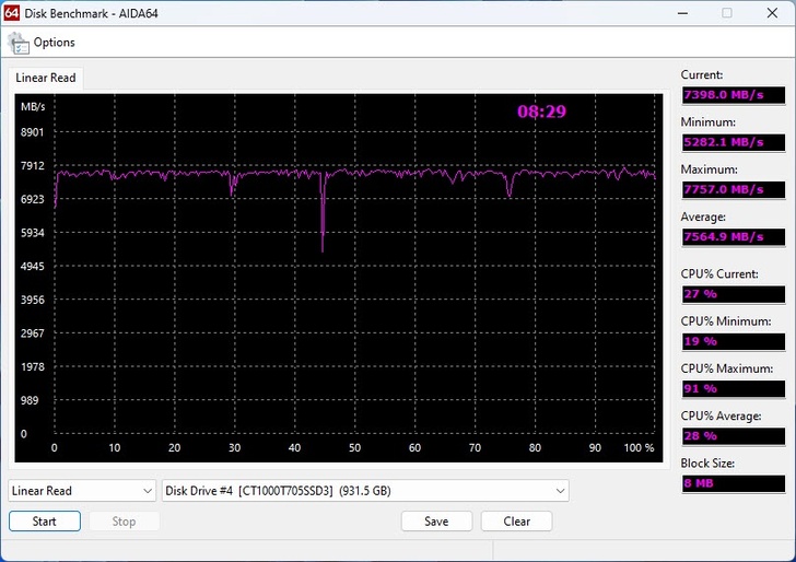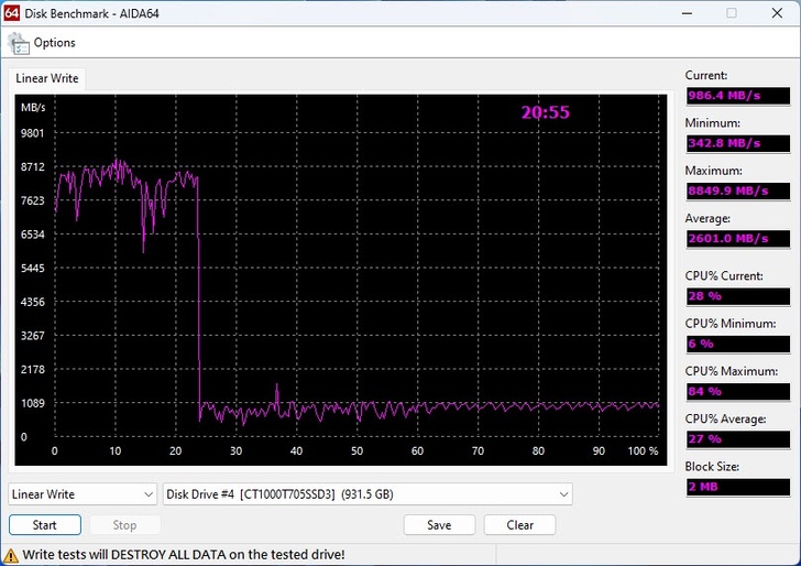 花了20分鐘左右完成,大約在900~1000MB/s上下完成寫入測試