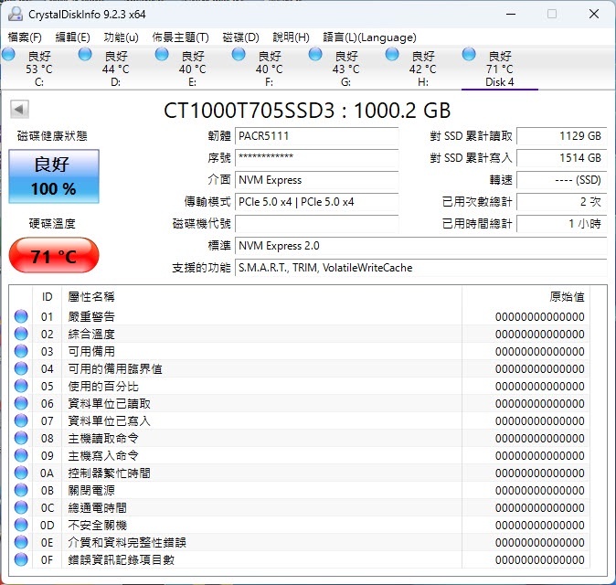 SSD:Crucial P5 500GB(系統碟)、Crucial T700 Gen5 1TB SSD