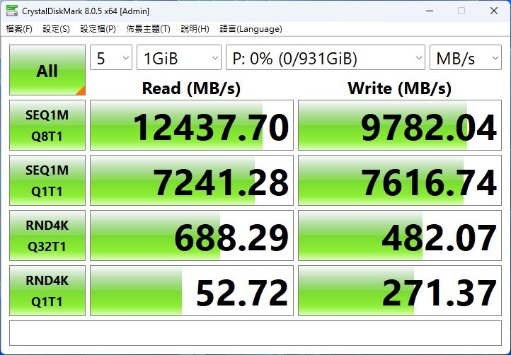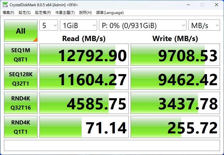 循序讀取與寫入都能以9722MB/8654MB高速讀寫合起來拿下破萬高分