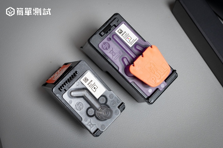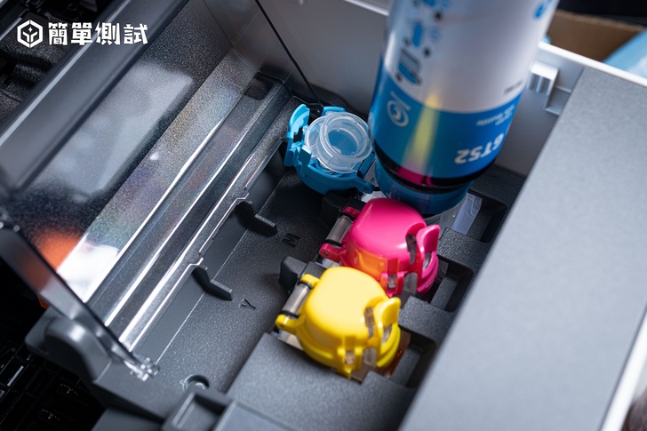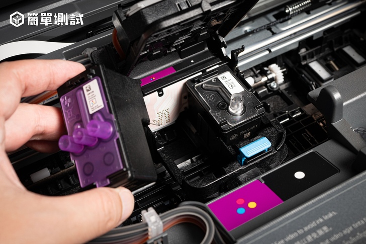 Smart Tank 795 總共有單組黑色與 3 色一組的 2 顆列印頭。裝載前記得要卸除保護上蓋,並且撕除金屬接點的保護貼紙才能正確裝入。