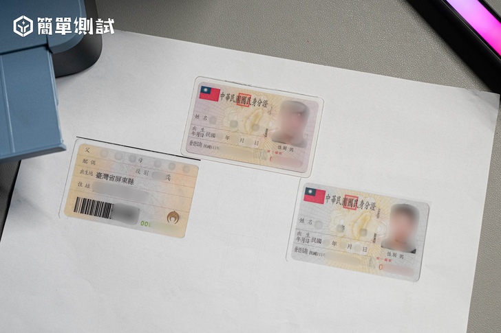 印表機內建的身份證影印功能,來源可選擇是從文件、相片或是掃描器玻璃板,要黑白或是彩色列印,最多一次能夠影印 99 份。先將身份證放進掃描器玻璃板後,只需手動正反換面,不需要特意移動身份證位置,列印出來就會是置中的,而且所有的動作指令,螢幕都有步驟顯示,超級方便!列印出來的成品色彩正確、解析度也很清晰。不過實際比對身份證就有些微 3% 到 5% 的放大程度。
