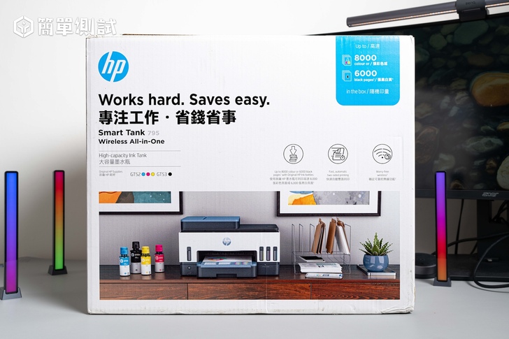 我手邊剛好有一台 HP(惠普)的 Smart Tank 795 家用型連續噴墨印表機。型號 795 是 Smart Tank 系列中的旗艦機型,該系列還有 755 和 725 另外兩款。