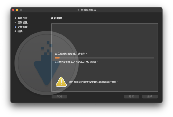 提醒一下,當印表機裝機完成,成功連線 Wi-Fi(2.4GHz / 5GHz)的時候,千萬不要使用印表的線上自動更新,否則會卡死在更新畫面,這時候只能按下關機鍵來中止更新。