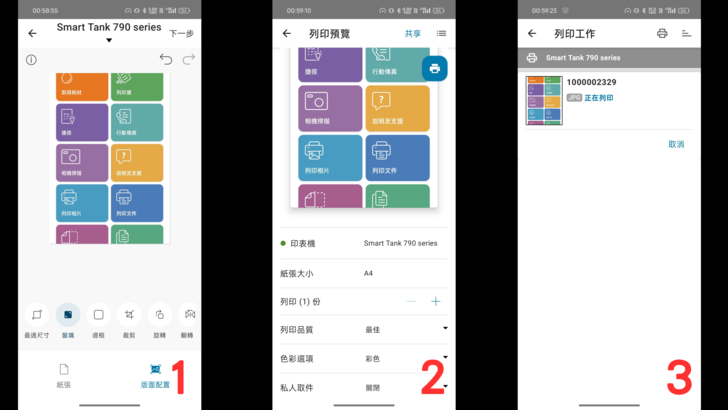 ❑ 螢幕:只有 Smart Tank 795 配備 3 英吋觸控面板,其他兩款配備 2 英吋螢幕並搭配實體按鍵。