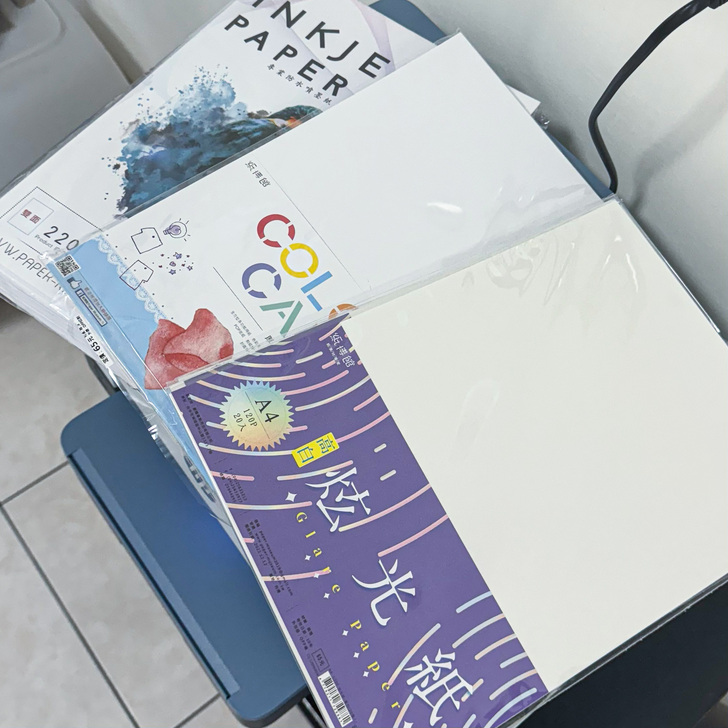 經過我這幾天測試過後,它能夠適應蠻多種類型的紙張,基本上磅數不要到超誇張近300磅的紙,家用列表機本來就不能負荷的厚度,不管是普通紙還是照片紙,他的列印效果都很不錯,尤其是炫光紙在家用列表機的效果超級無敵好,油墨完全不暈染(順帶一提他是原廠防水黑墨 超讚),又同時保持炫光紙的紙張特性,六月底文具展會印幾幅之前的畫展售。