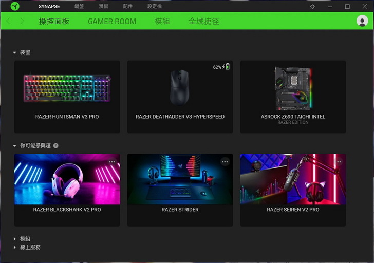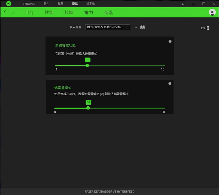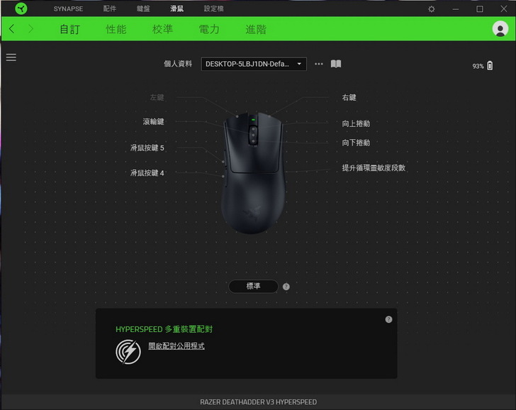 ▼ Razer Synapse 3 軟體介面,點擊 Razer DeathAdder V3 HyperSpeed 就可進行更詳細的設定。