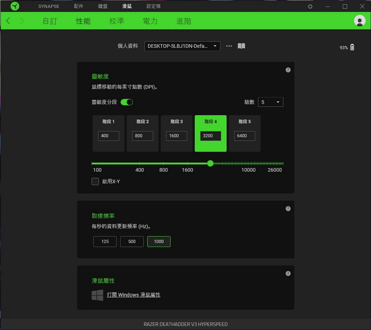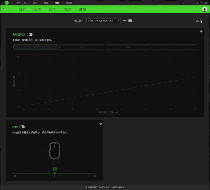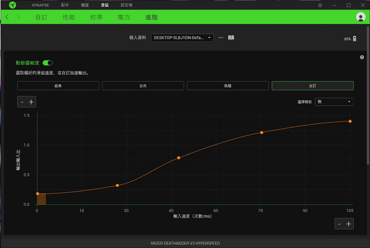 Razer DeathAdder V3 HyperSpeed 還有一個超棒的特色,可以透過 Razer Synapse 3 軟體 來開啟 動態靈敏度,自訂 DPI輸出和滑鼠輸入,針對自己的操作習慣調整出自己的風格。
