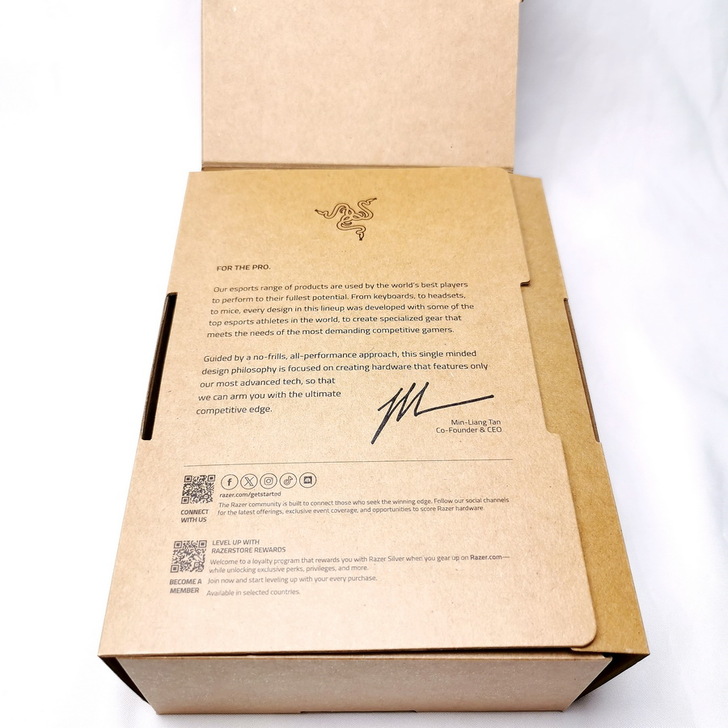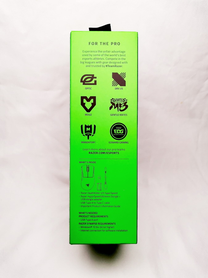 ▼ 盒裝左側有著諸多愛用雷蛇產品的電競戰隊LOGO,下方則是盒裝內容物的圖示。