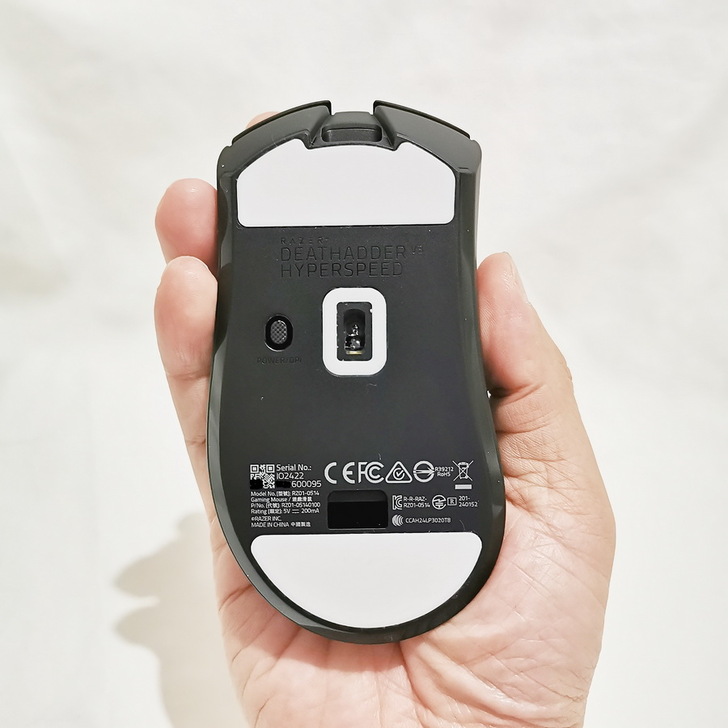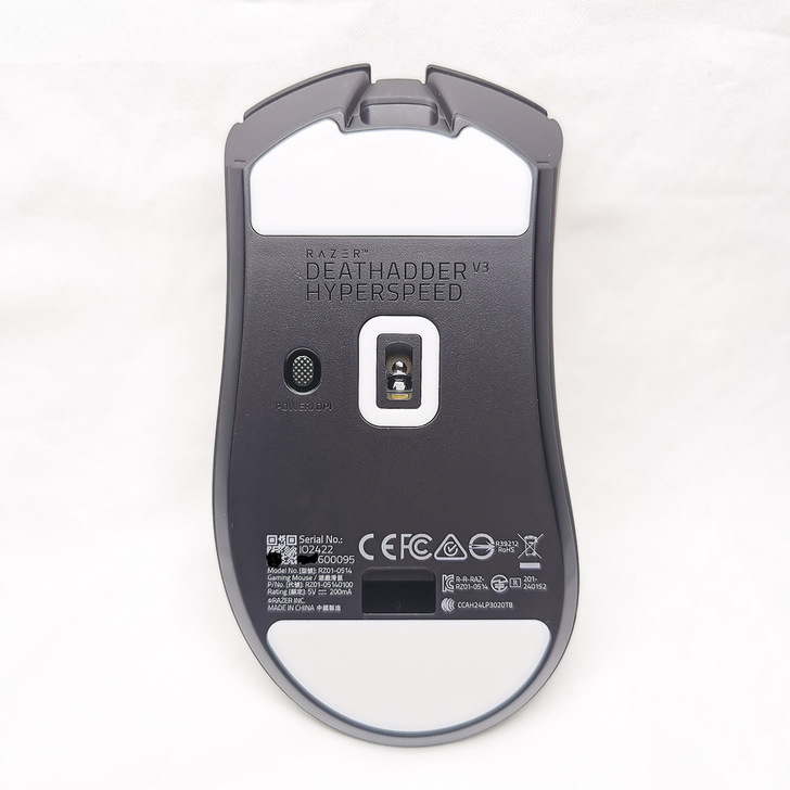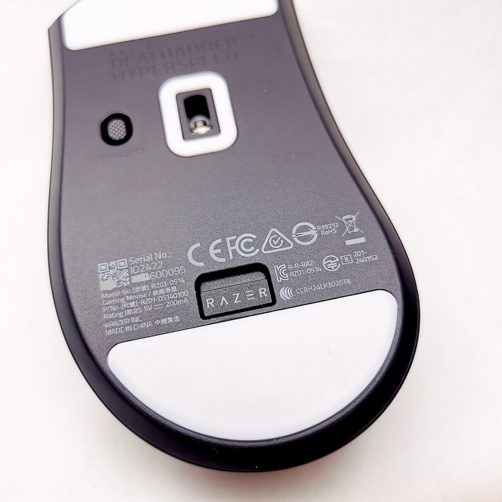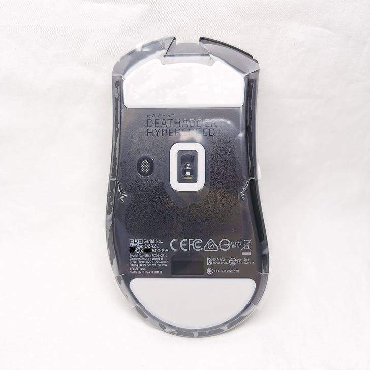 ▼ Razer DeathAdder V3 HyperSpeed 底部貼著一層保護塑料蓋,當然是一定先要取下的。