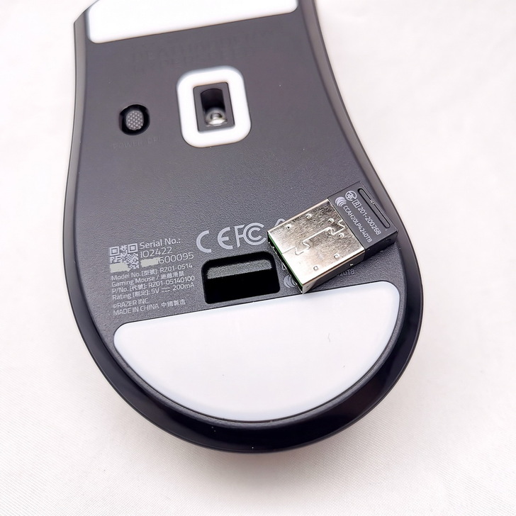 底部的下方有一小塊區域,剛好可以用來收納 2.4GHz HyperSpeed USB。