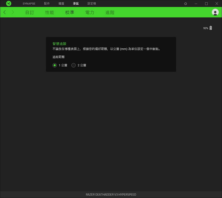 ▼ 智慧追踨 - 可以設定 追蹤距離,讓滑鼠不論在哪種表面上都適用。