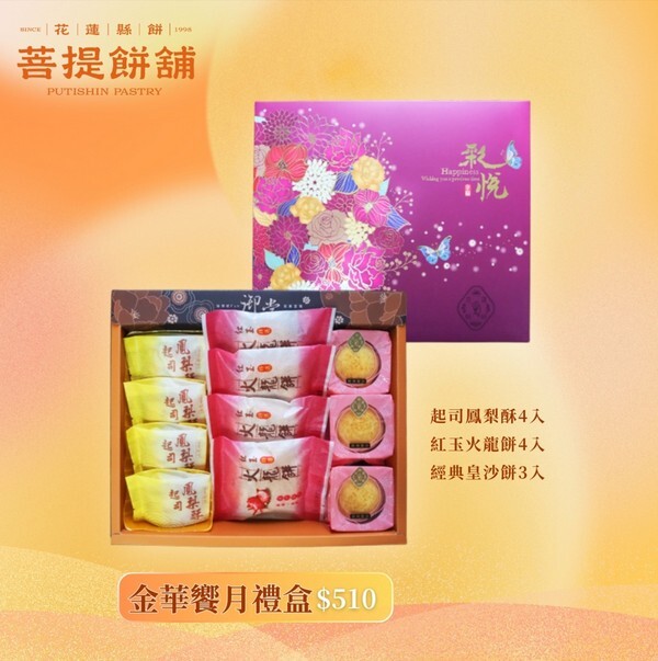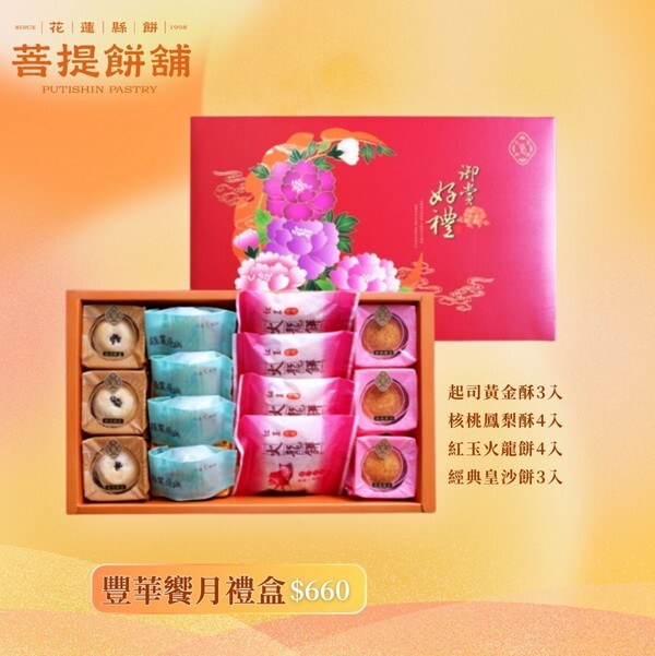 核桃鳳梨酥*4、紅玉火龍餅*4、經典皇沙餅*3、起司黃金酥*3