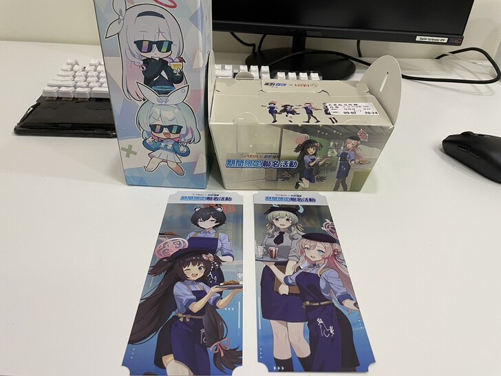 1.在這天購買餐點並且在社群打卡標記#蔚藍檔案x bb.q CHICKEN的話,還可以額外獲得bb.q的點心+消暑扇各一,還有最重要的遊戲角色透卡組。