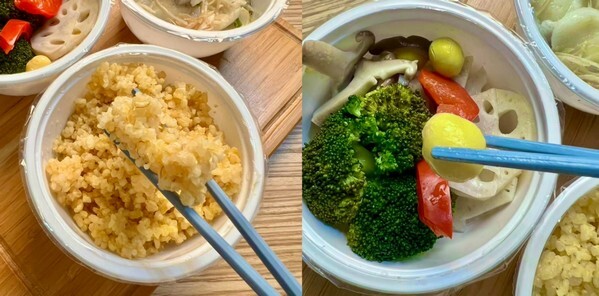 加熱的部分也很簡單,每份餐點來的時候都是獨立的碗裝,都會用封膜封好,這個碗是可微波的材質,想吃的時候可以直接在封膜上戳洞微波或放電鍋就OK,非常方便!