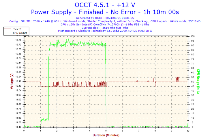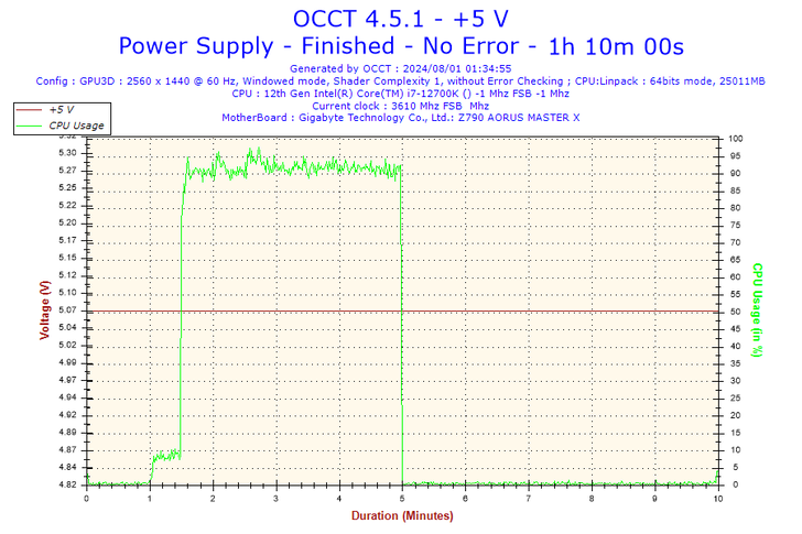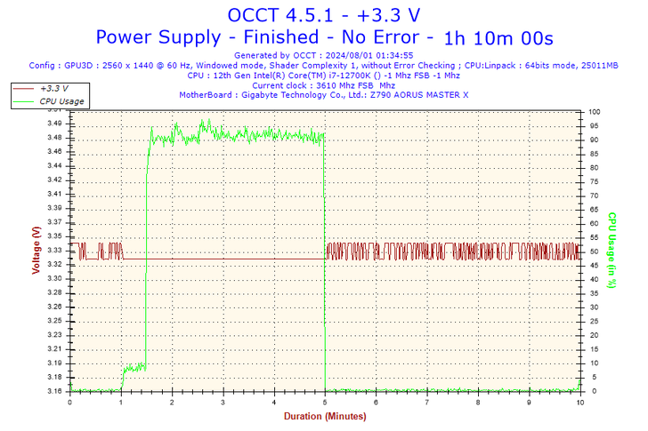 OCCT +12V/5V+3.3 燒機測試 測試參考