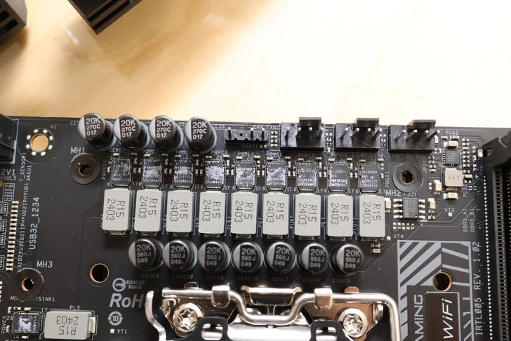 PCB 底部上方有加一小塊強化底板VRM散熱片使用
