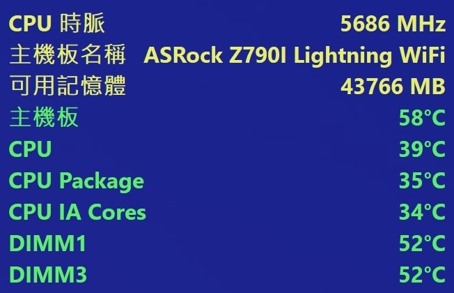 主機板有主動VRM散熱即使是i9裝載也只有58度