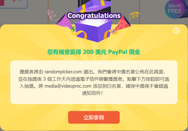 3. 抽獎環節 100% 中獎,獎品包括軟體授權、優惠券,以及 200 美元 PayPal 現金大獎