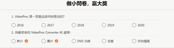 注意:提交問卷後即可參加抽獎,100% 中獎!