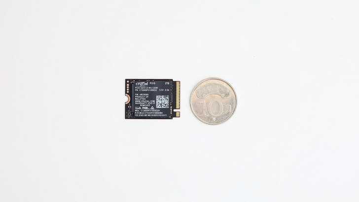 P310 2TB 這麼小一片的 M.2 2230 SSD,重量僅有 2.6g。Crucial 提供五年保固。