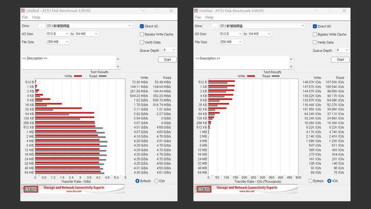 在 ATTO Disk Benchmark 中,讀取大約在 4.70GB/s,寫入則大約在 4.20GB/s。